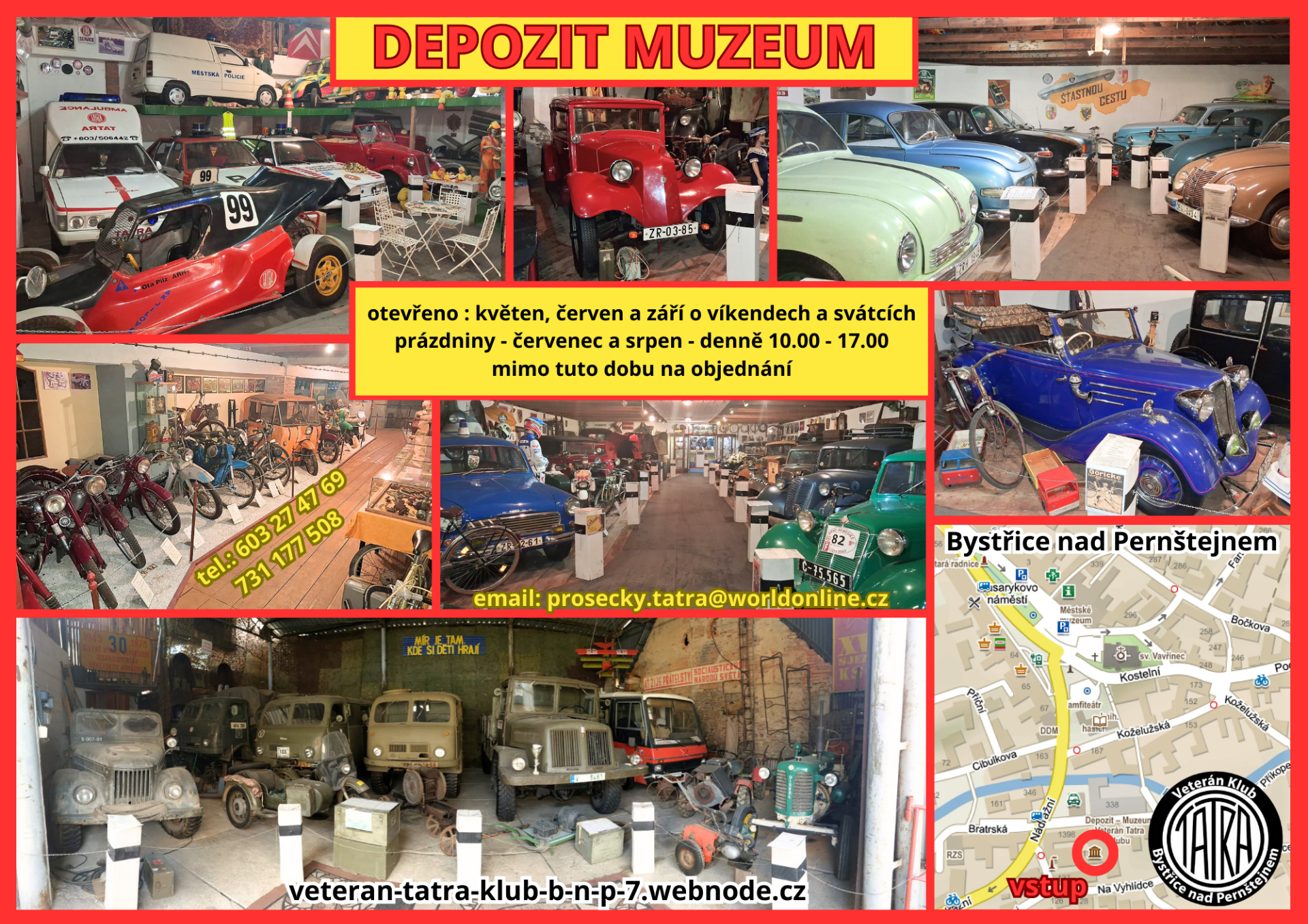 V Bystřici nad Pernštejnem je s úctou střežen odkaz značky Tatra. Veterán Tatra klub sdružuje přátele automobilů, které vynikají pevností konstrukce, krásou tvaru a poctivostí provedení. Pečujeme o historické vozy a zpřístupňujeme je veřejnosti v Depozitu TATRA muzea.